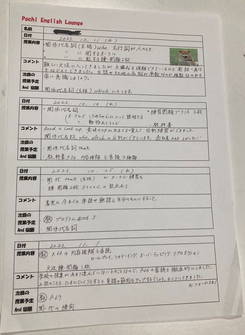 これは、中学3年生の授業内容やコメント用紙です。私はカルテと呼んでいて、疑問や問題点の改善に反映させてます。